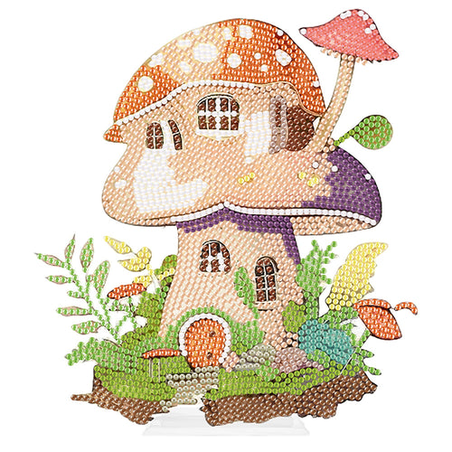 Round Crystal Painting Desktop Diamond Painting Table Decor (Mushroom House #2)