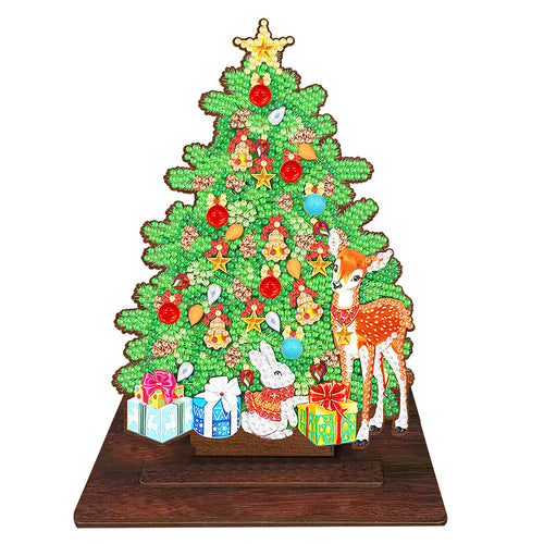 Wooden Desktop Diamond Art Kits Xmas Tree Diamond Painting Desktop Ornaments Kit