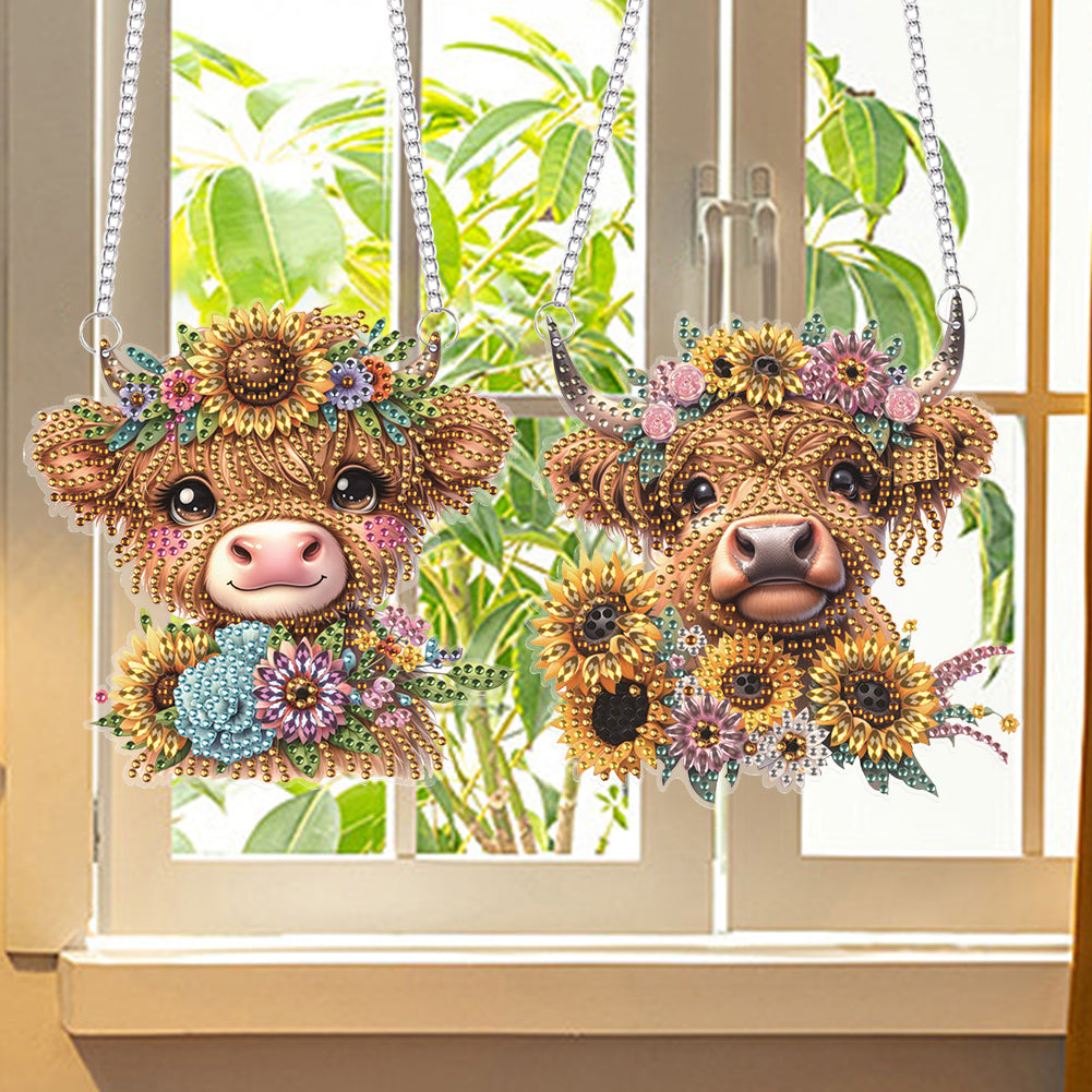 2Pcs PET Special Shaped Sunflower Calf Diamond Painting Hanging Decor for Home