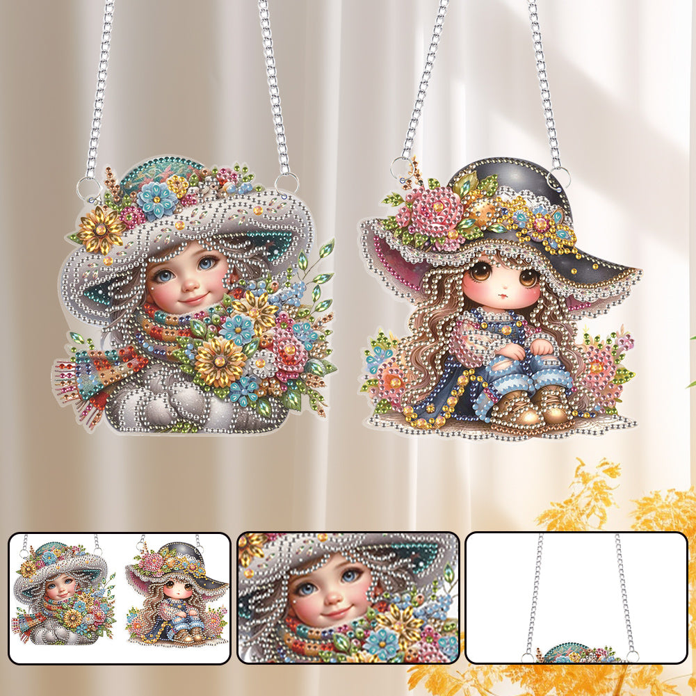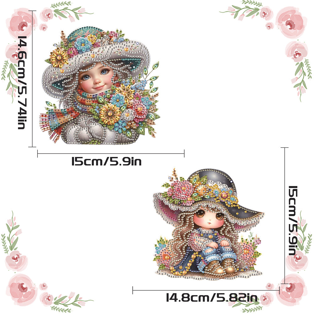 2Pcs Special Shape Hat Girl 5D DIY Diamond Painting Dots Pendant for Wall Window