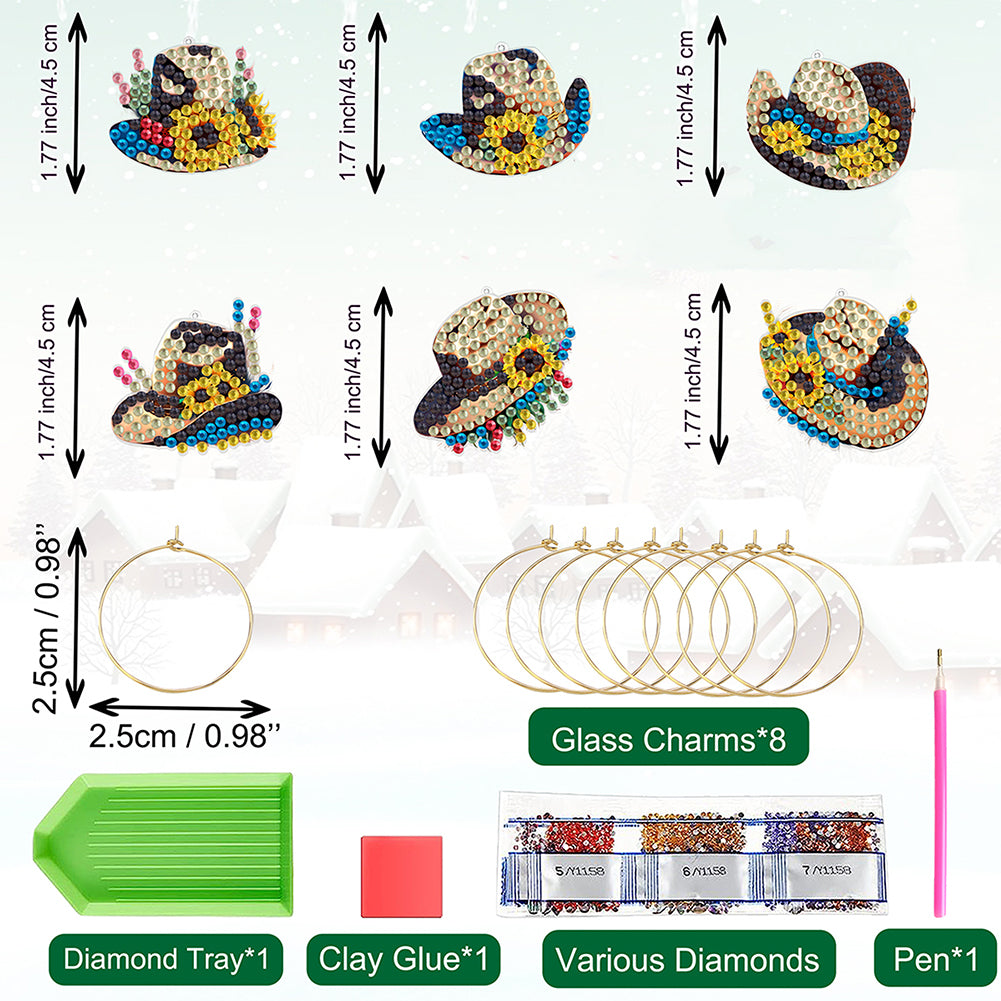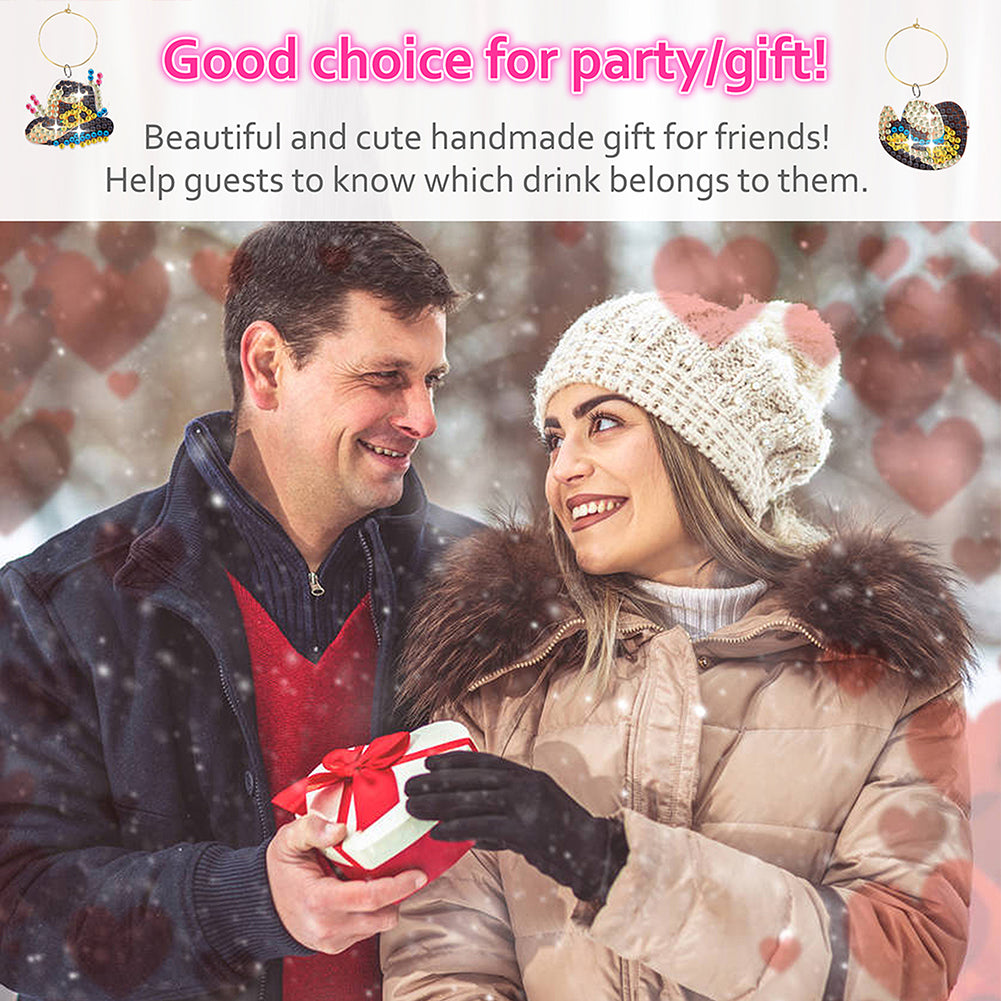 6 Pcs Hat Diamond Painting Kit Wine Glass Recognizer Pendant Wine Glass Marker