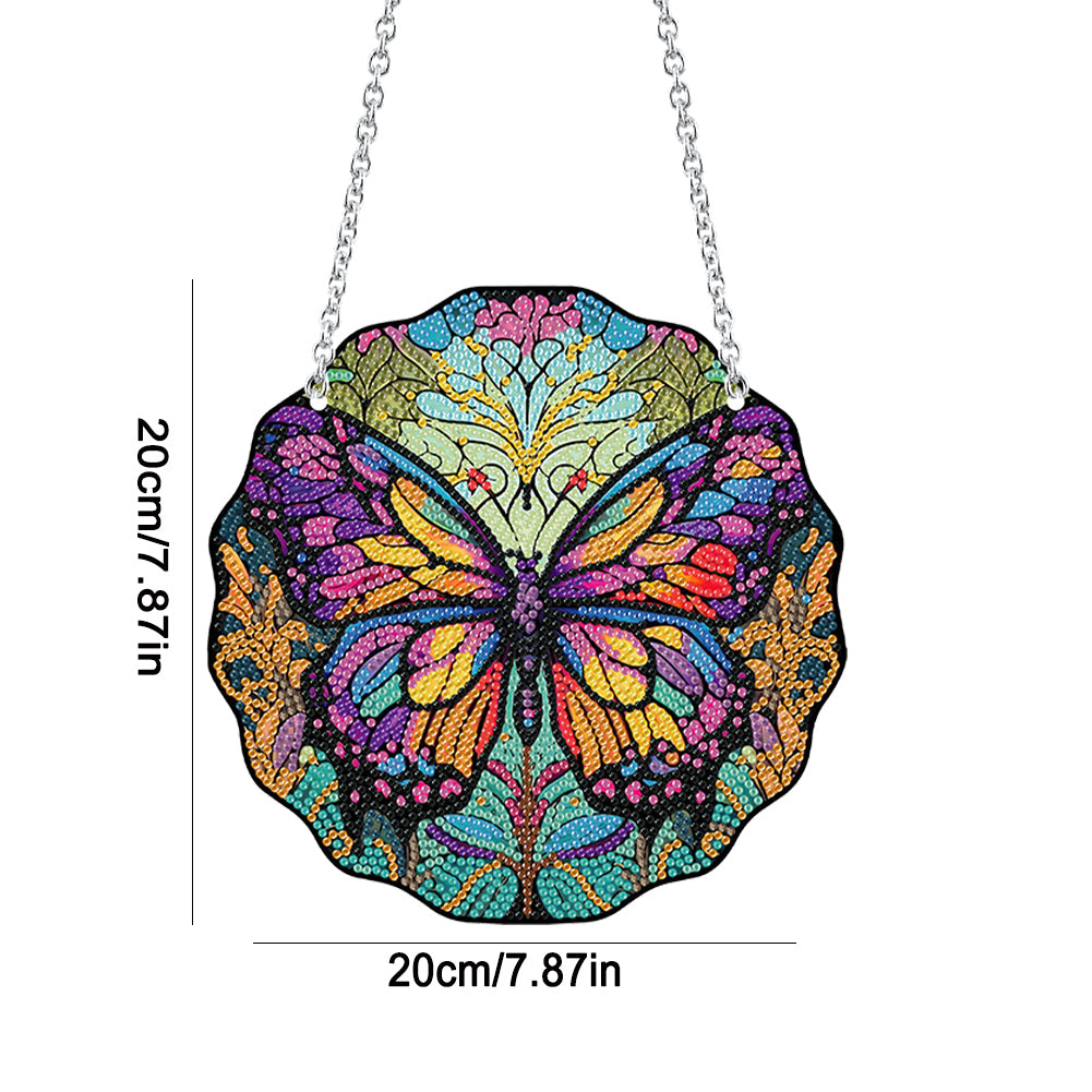Acrylic Dragonfly Butterfly Round Single-Sided Diamond Painting Hanging Pendant