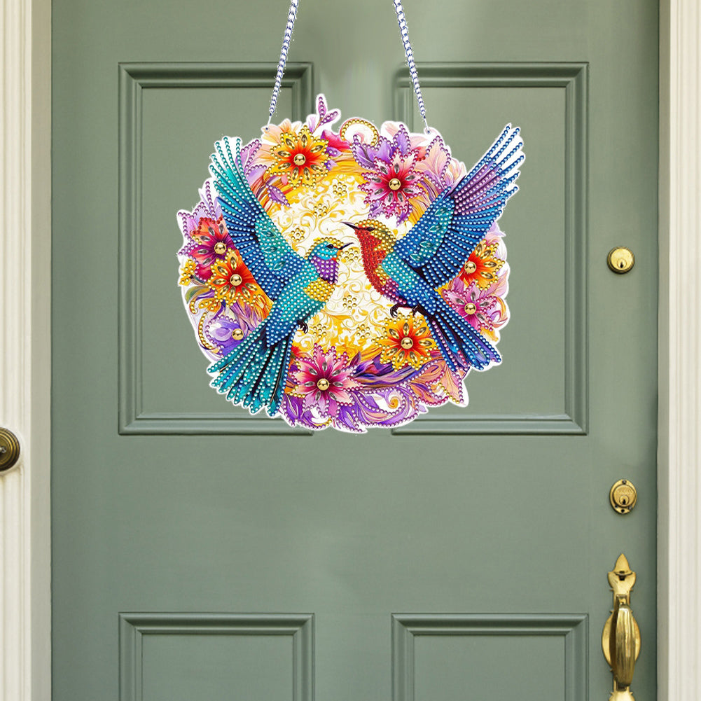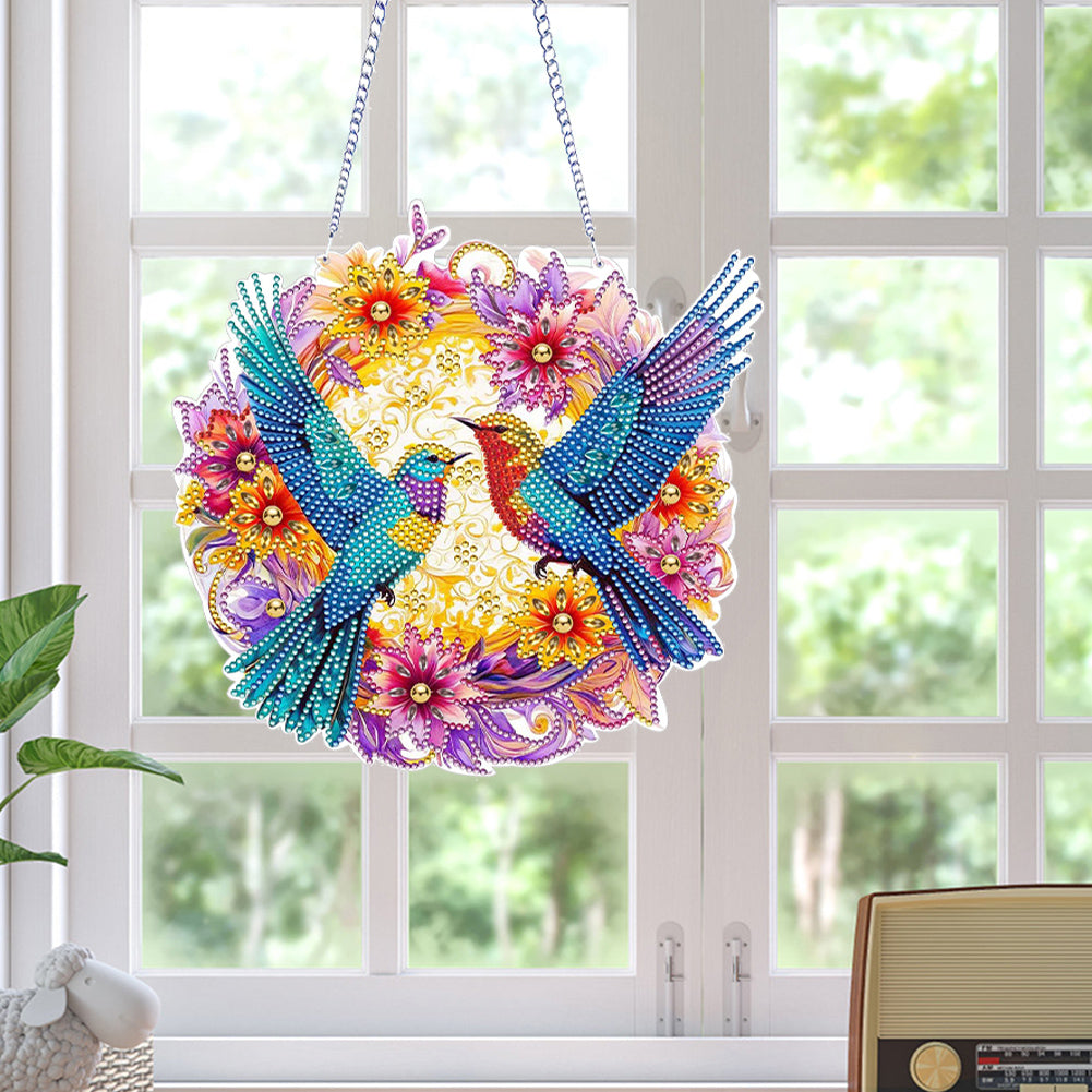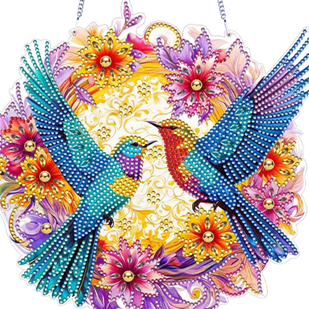 Acrylic Hummingbird Flower Special Shape Diamond Painting Hanging Pendant