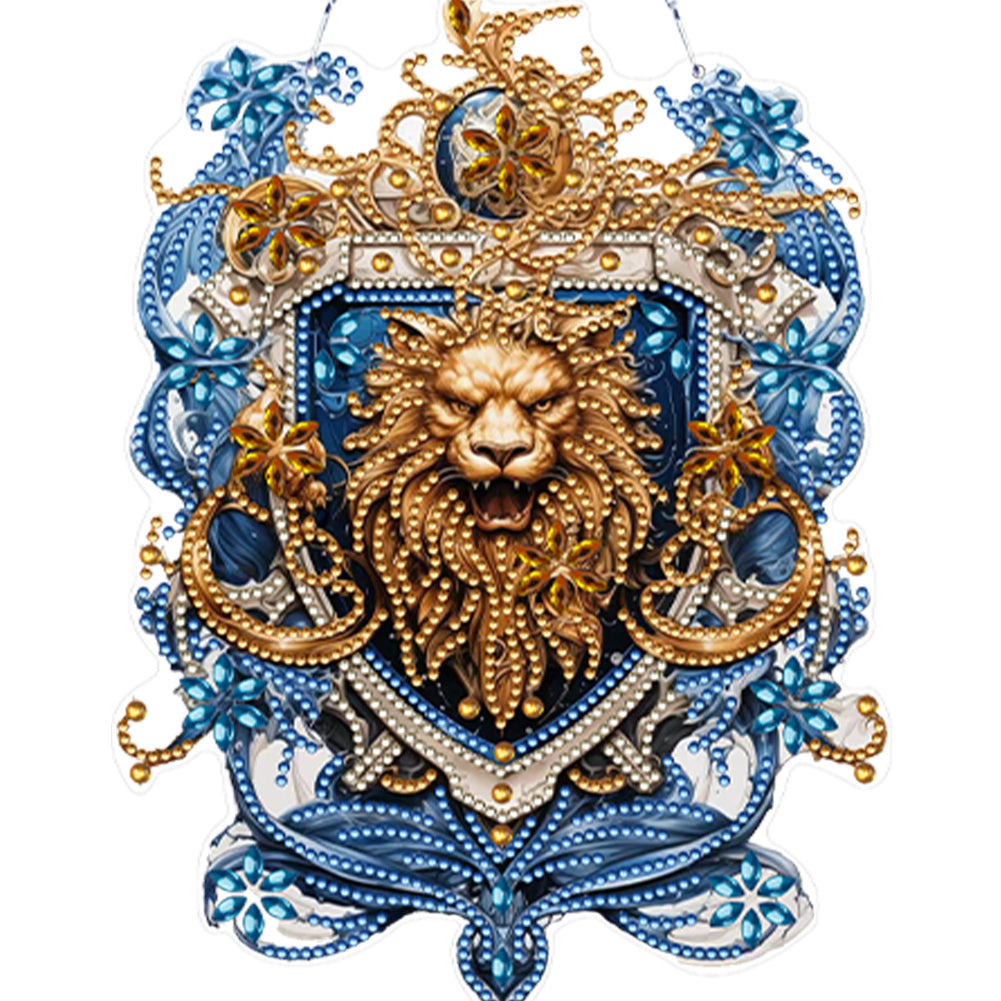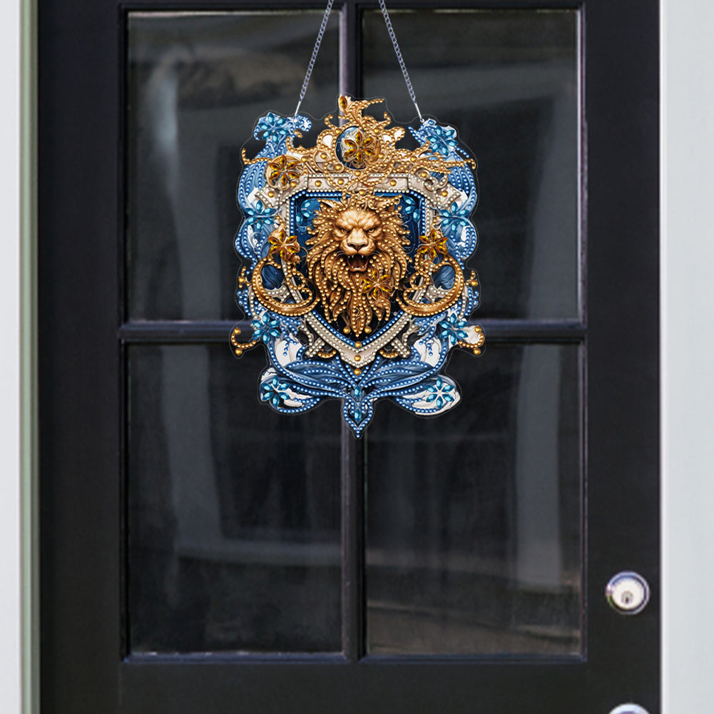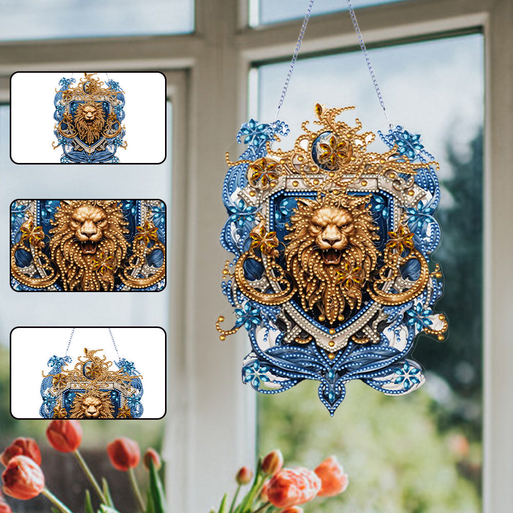 Acrylic Lion Head 5D DIY Diamond Painting Dots Pendant for Garden Window Decor