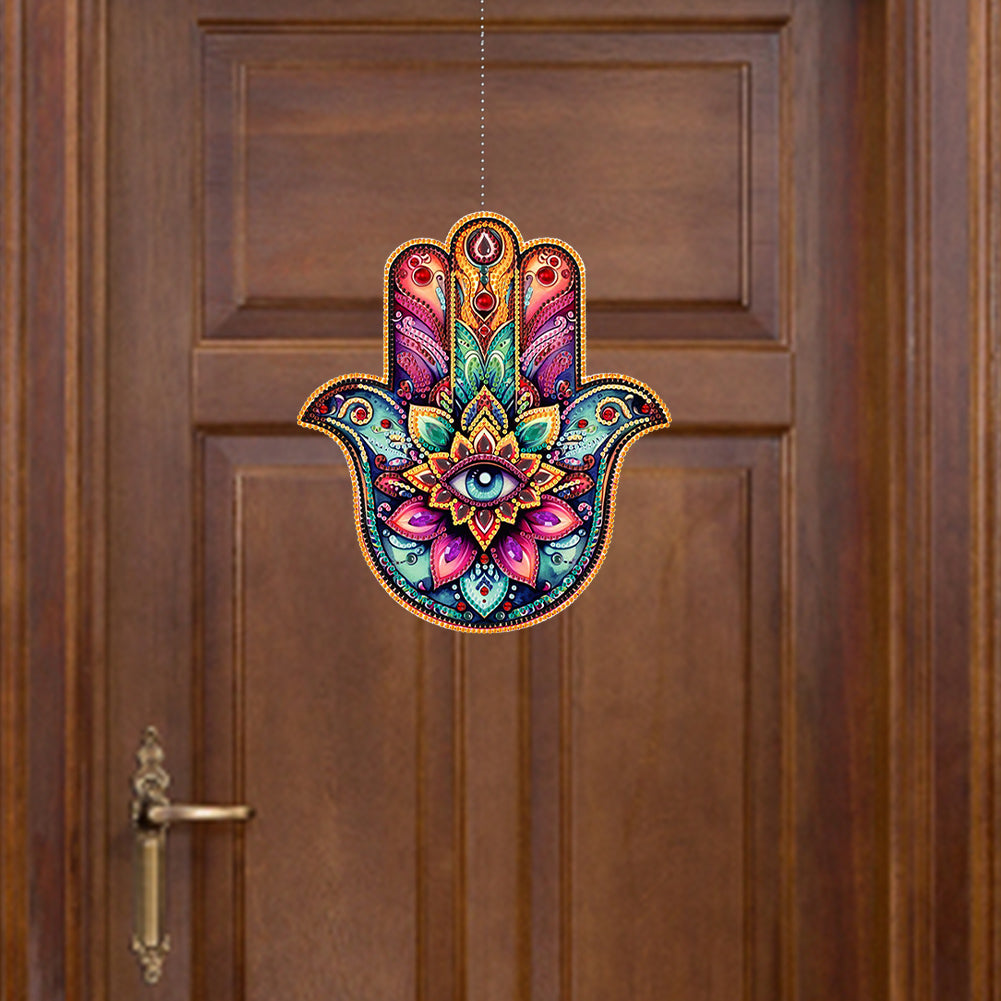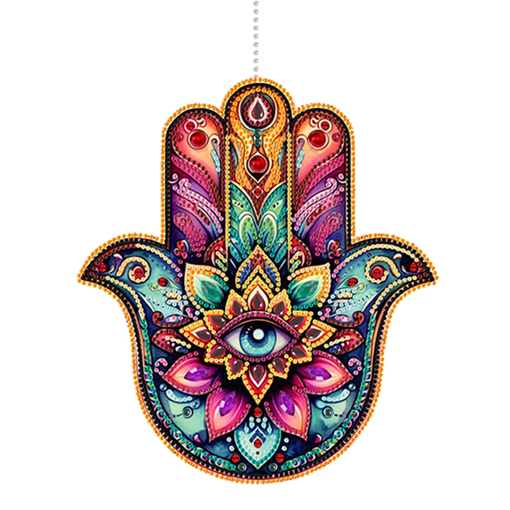 Acrylic Lotus Palm 5D DIY Diamond Painting Dots Pendant for Garden Window Decor