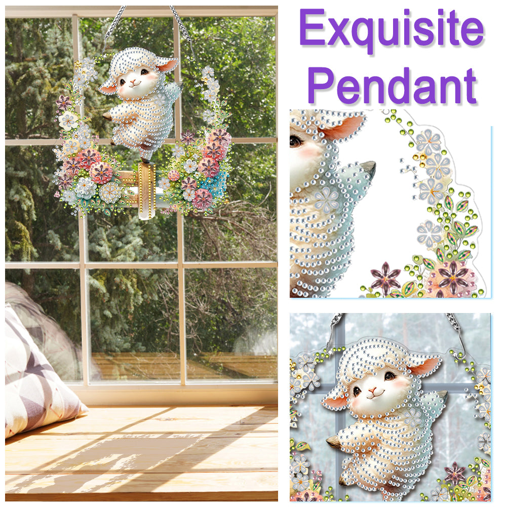 Acrylic Sheep 5D DIY Diamond Painting Dots Pendant for Wall Garden Window Decor