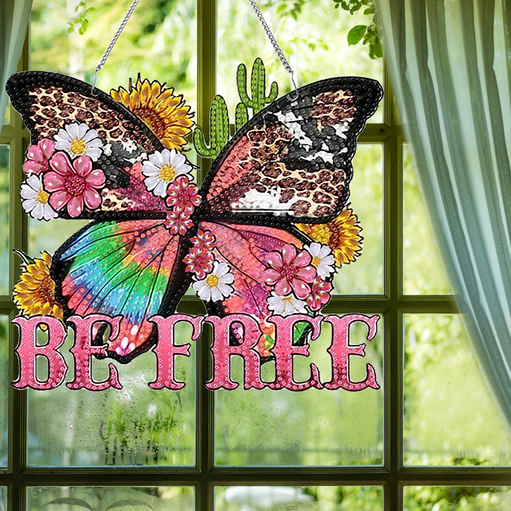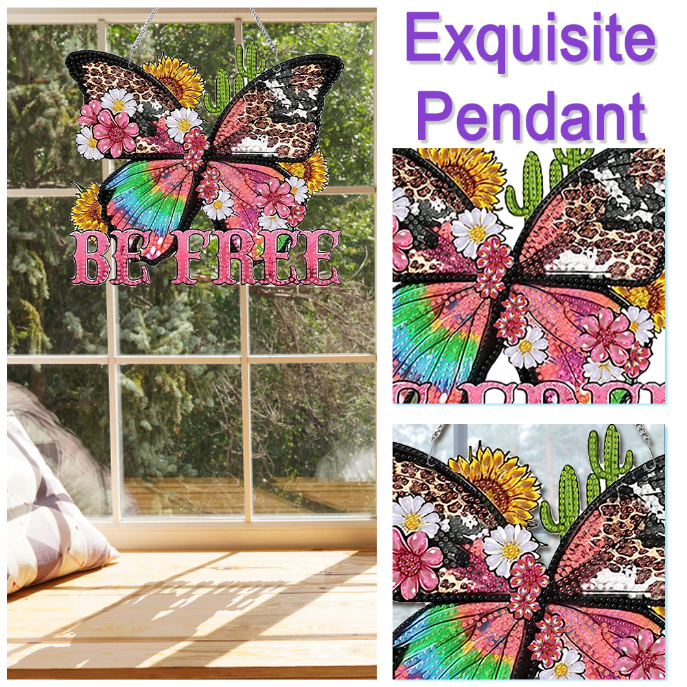 Acrylic Special Shape Butterfly Diamond Painting Pendant for Home Wall Window