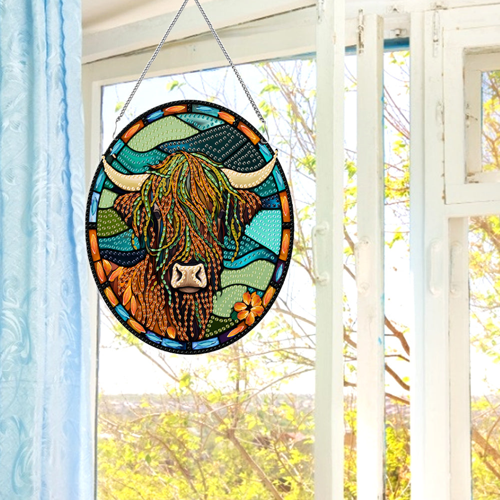 Acrylic Stained Glass Animal Diamond Painting Hanging Pendant Home Decor (Yak)