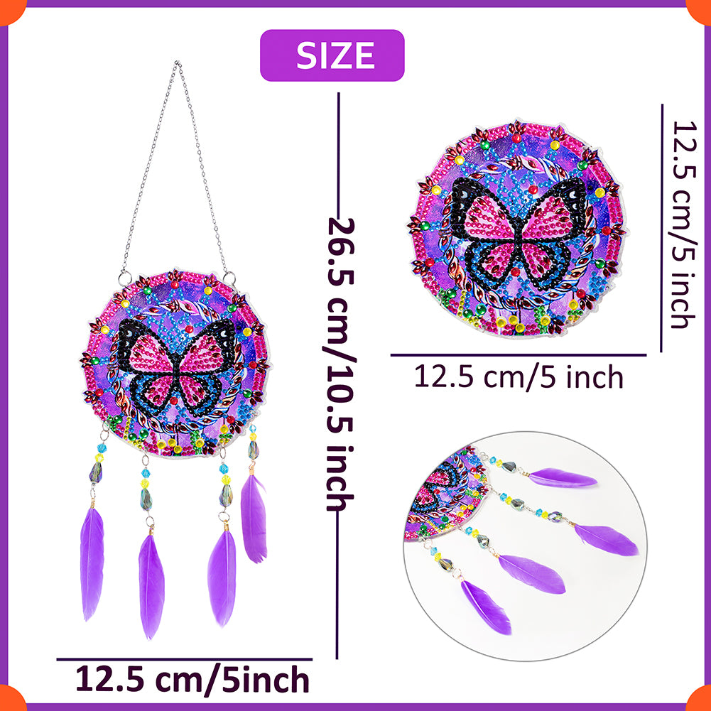 Double Sided Diamond Art Hanging Pendant Feather Wind Chime for Home Wall Decor