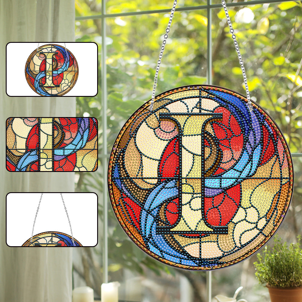 • Load image into Gallery viewer, Double Sided Letter I Suncatcher Diamond Drawing Hanging Ornament for Home Decor