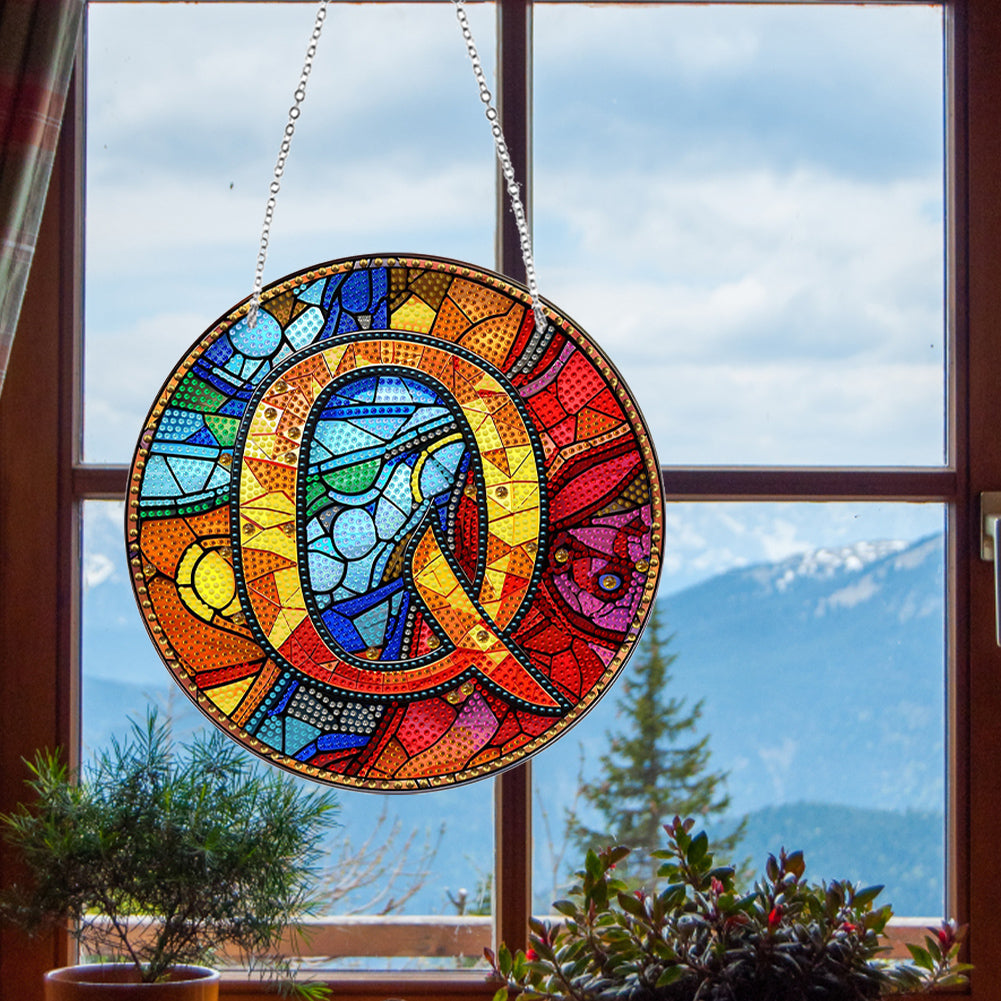 • Load image into Gallery viewer, Double Sided Letter Q Suncatcher Diamond Drawing Hanging Ornament for Home Decor
