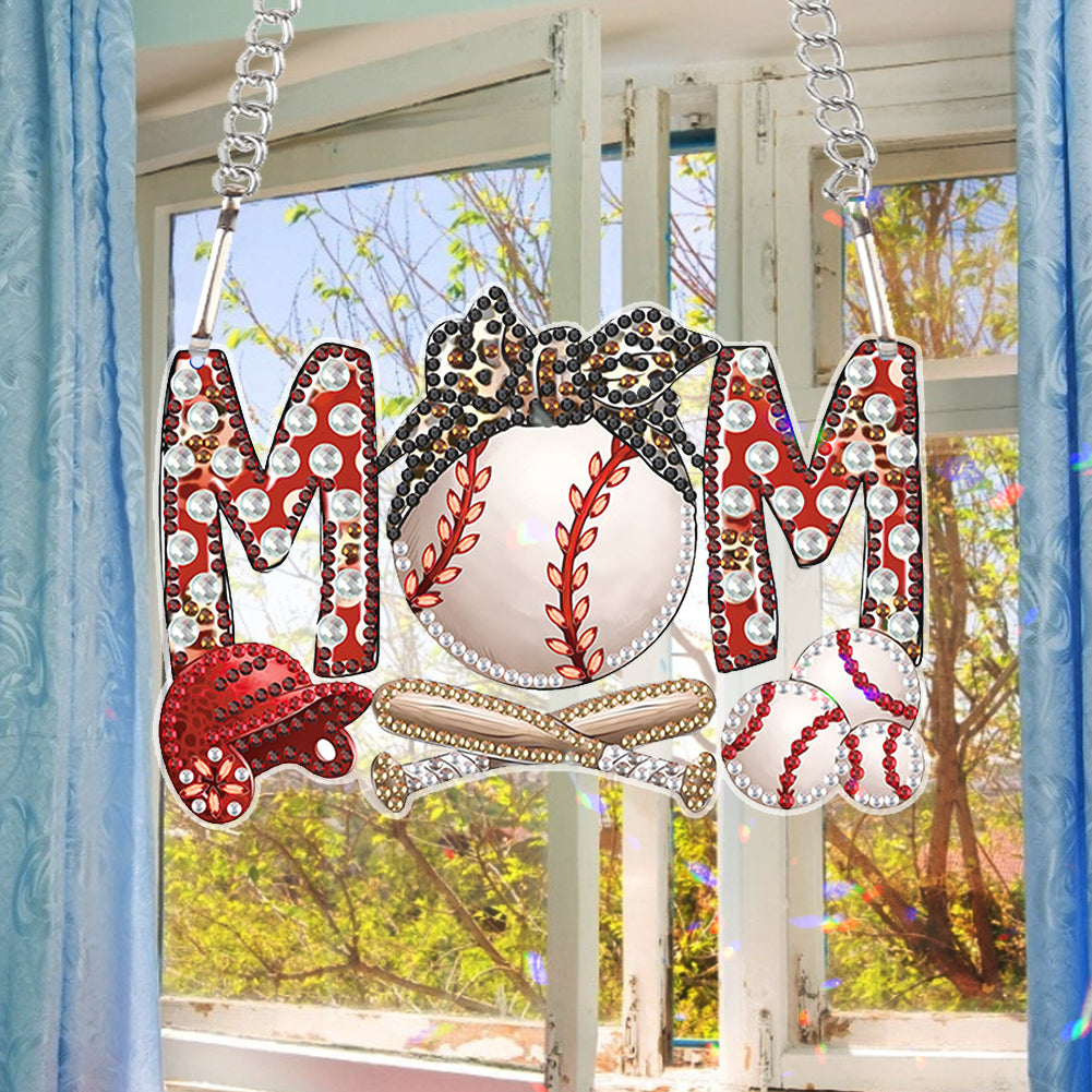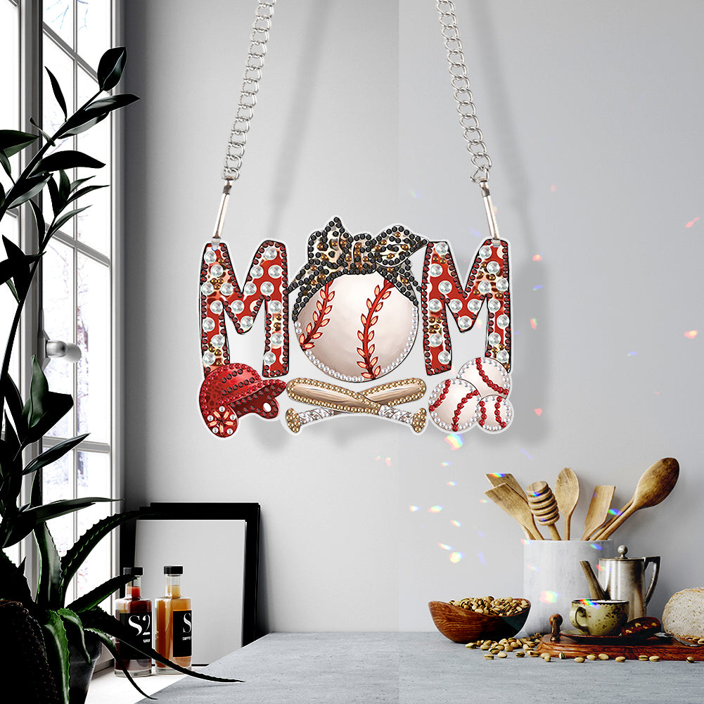 Mom Baseball Art Diamond Painting Hanging Pendant Acrylic Home Windows Decor