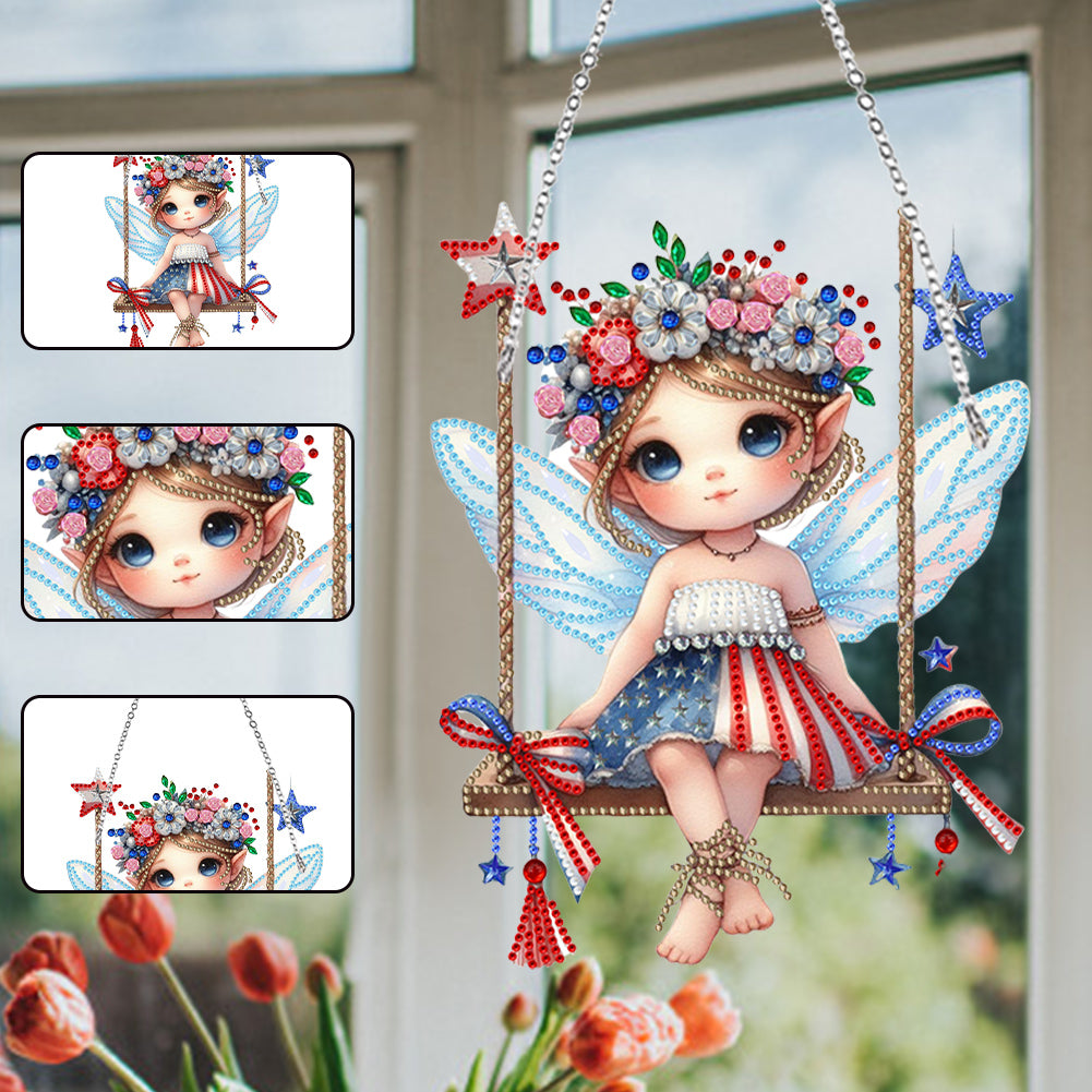 Single-Side Fairy Diamond Art Hanging Pendant for Home Wall Decor (Fairy Swing)