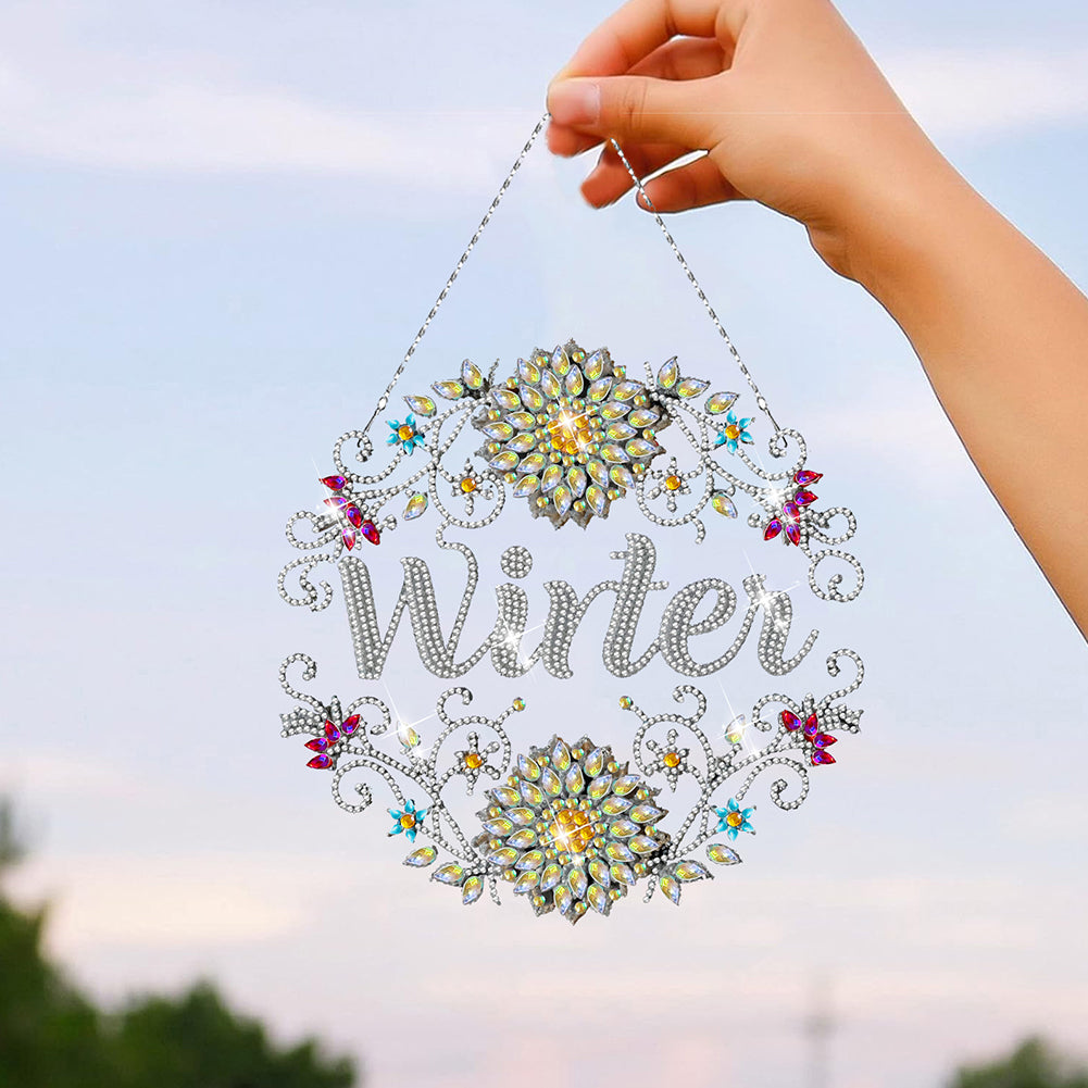 Single-Sided Diamond Art Hanging Pendant Home Decor (Winter Ice Crystal Flower)
