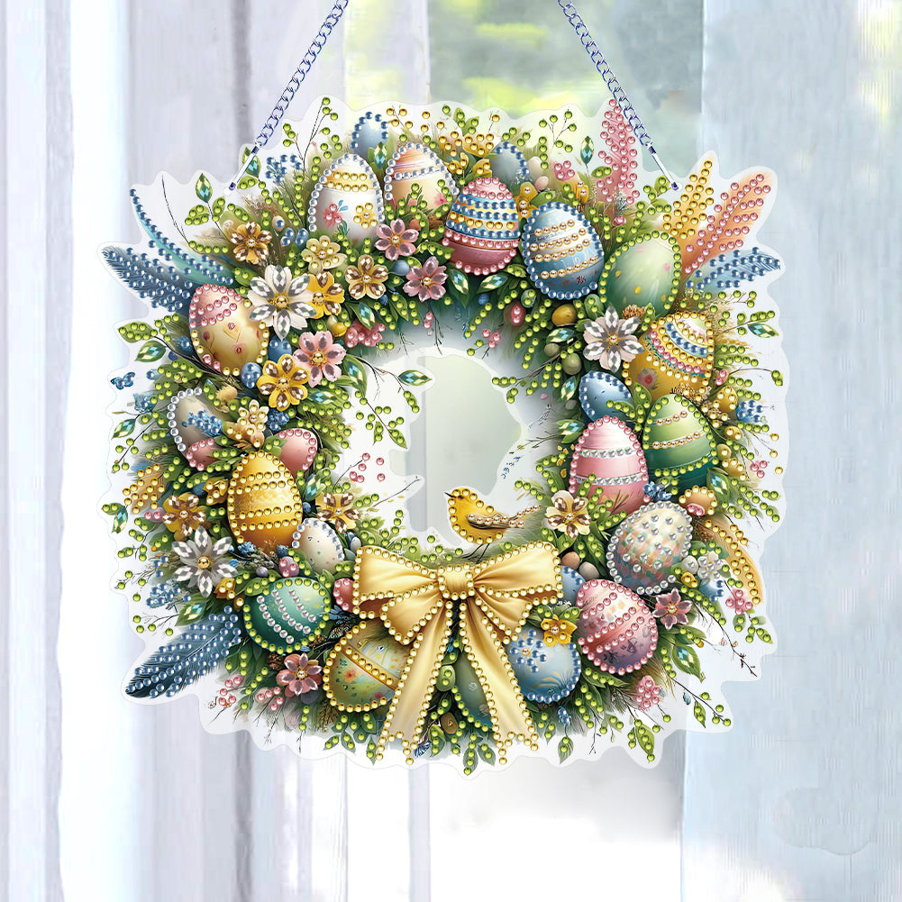 Single Sided Easter Wreath Cute Diamond Art Hanging Pendant Wall Decor (Bird)