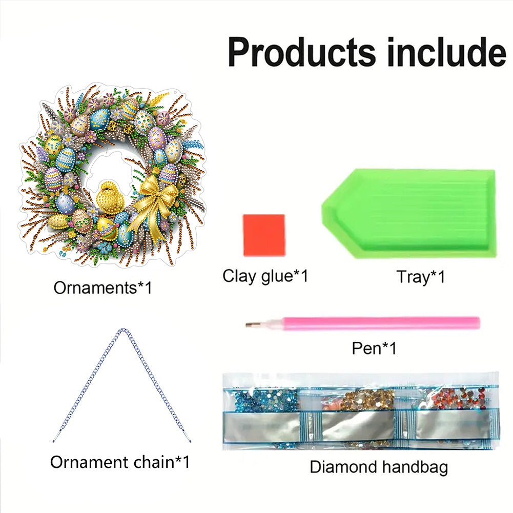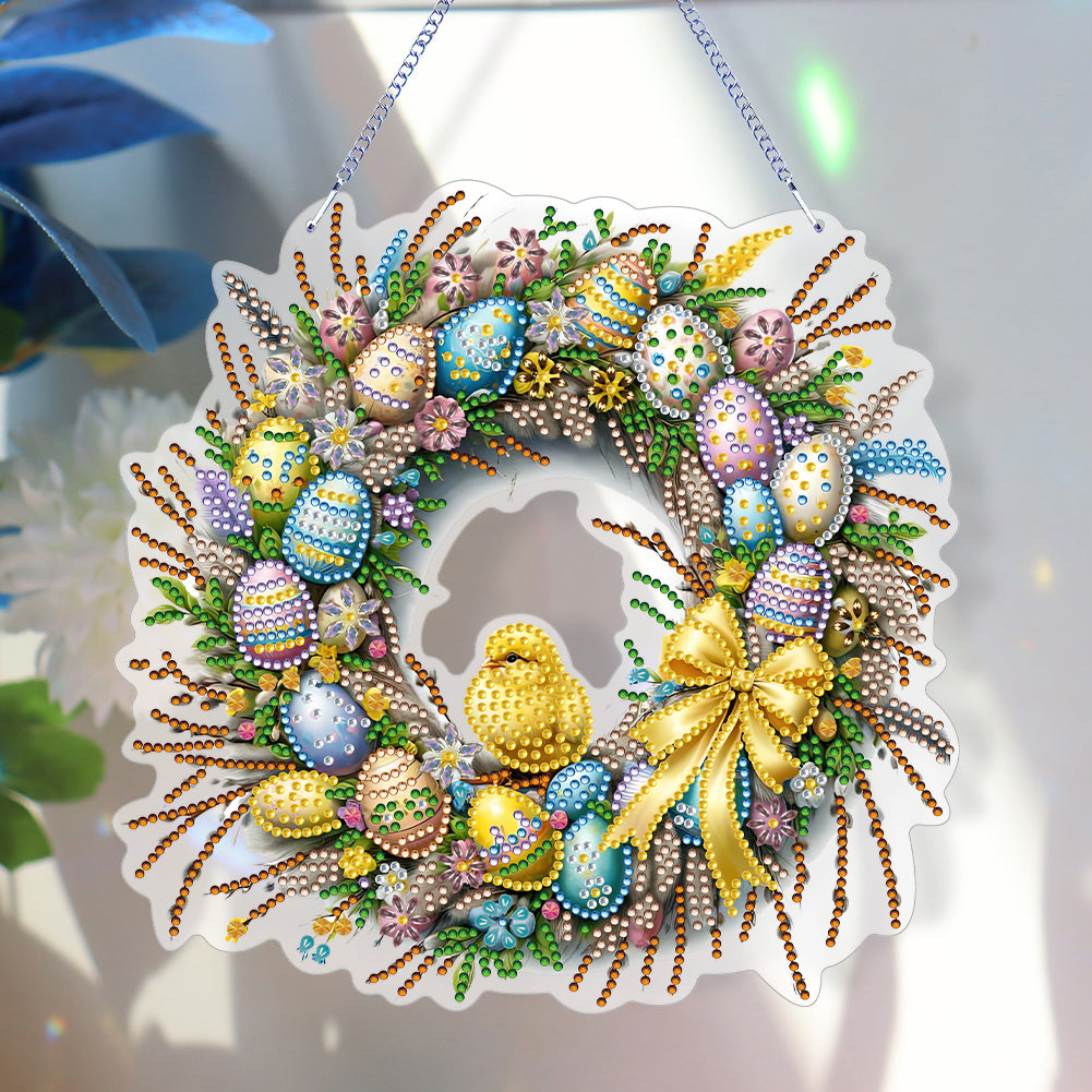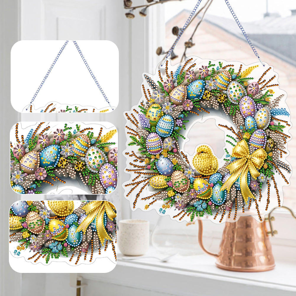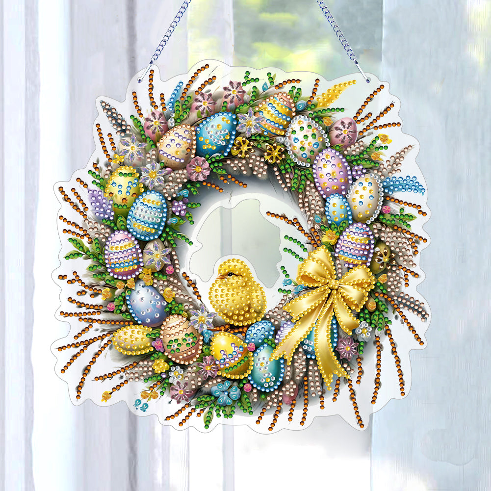 Single Sided Easter Wreath Cute Diamond Art Hanging Pendant Wall Decor (Chicken)