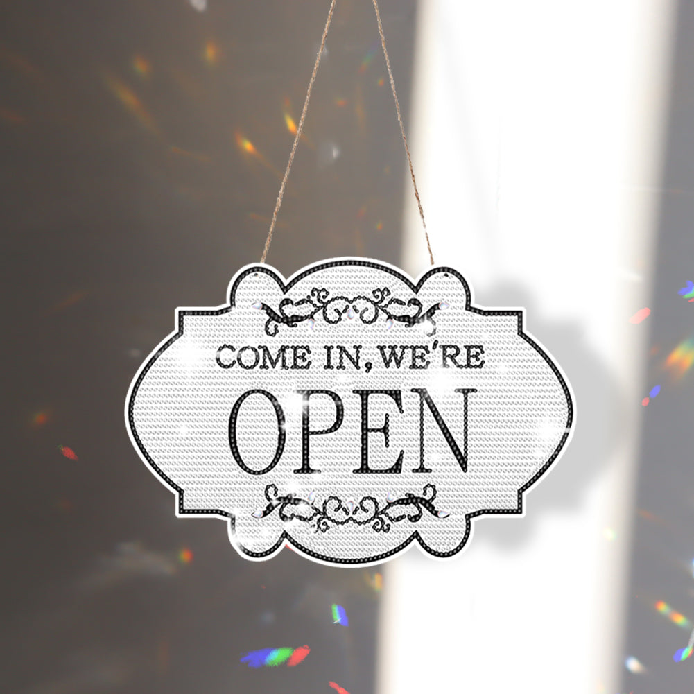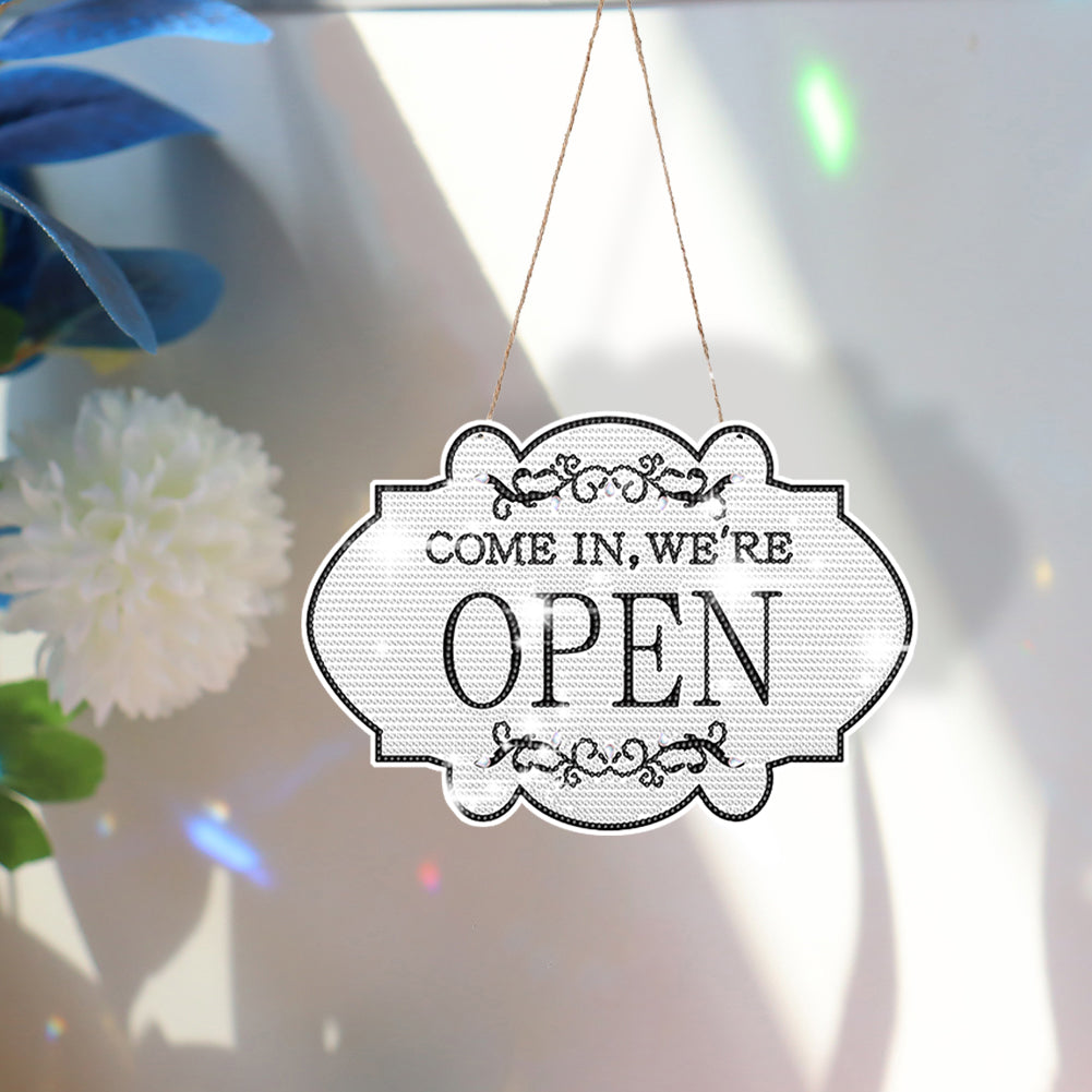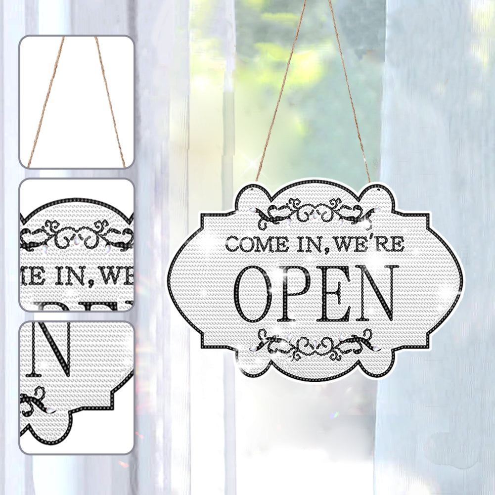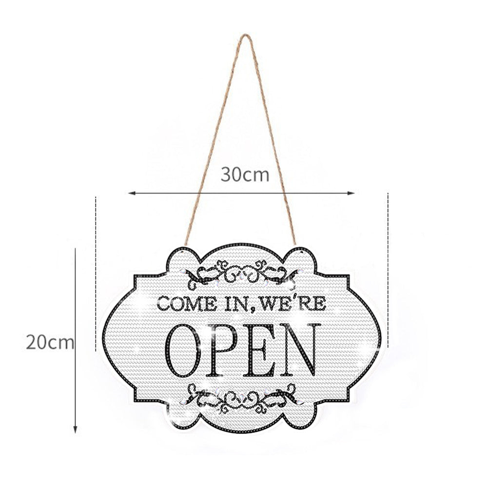 Wooden Shop Sign Open Closed 5D DIY Diamond Painting Dots Pendant for Wall Decor