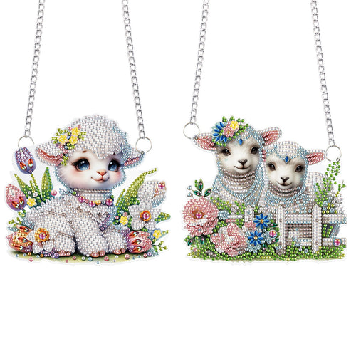 2Pcs PET Special Shaped Cute Lamb Diamond Painting Hanging Decor Bedroom Decor