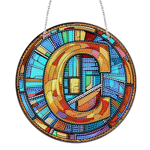 Double Sided Letter C Suncatcher Diamond Drawing Hanging Ornament for Home Decor