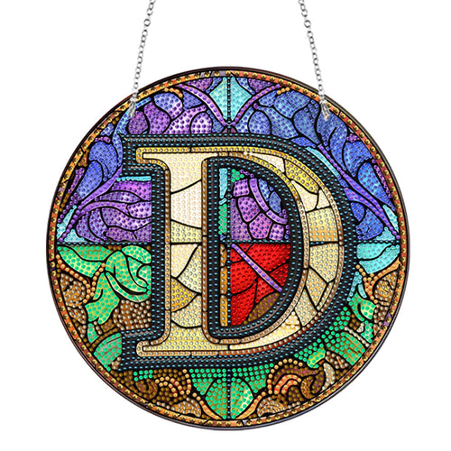 Double Sided Letter D Suncatcher Diamond Drawing Hanging Ornament for Home Decor