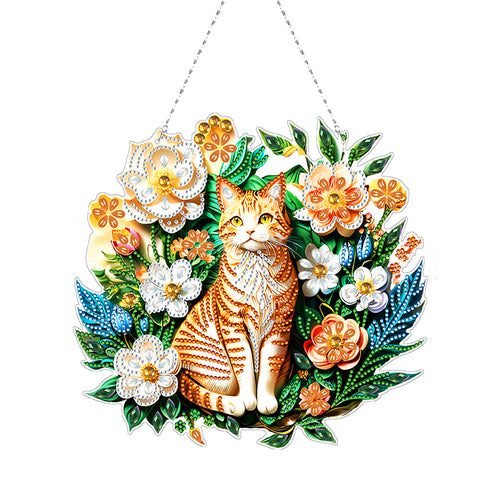 Cat Dog Double Sided Effect Diamond Painting Hanging Pendant Home Windows Decor