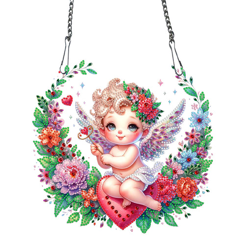 Single Sided Wreath Angel Rhinestone Diamond Art Window Pendants for Wall Decor