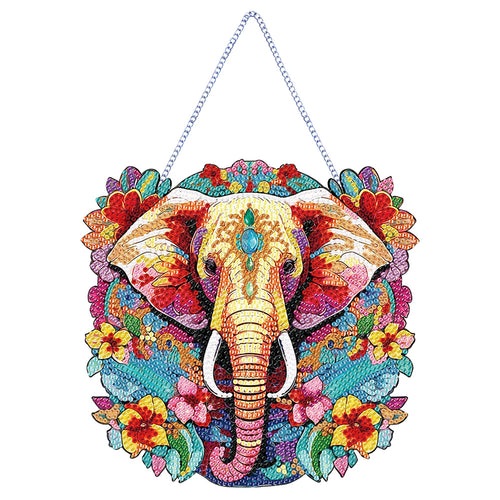 Acrylic Elephant Single-Sided Round Diamond Painting Hanging Pendant (20x20cm)