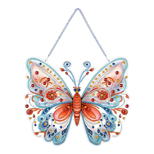 Single Sided Beauty Butterfly Diamond Art Hanging Pendant Home Decor (Red Blue)