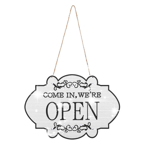 Wooden Shop Sign Open Closed 5D DIY Diamond Painting Dots Pendant for Wall Decor
