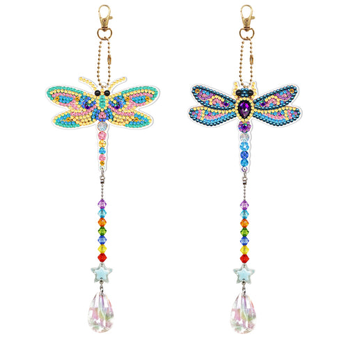 2pcs 5D Diamond Painting Dragonfly Pendant Bag Keychain Jewelry (SMDZ201)
