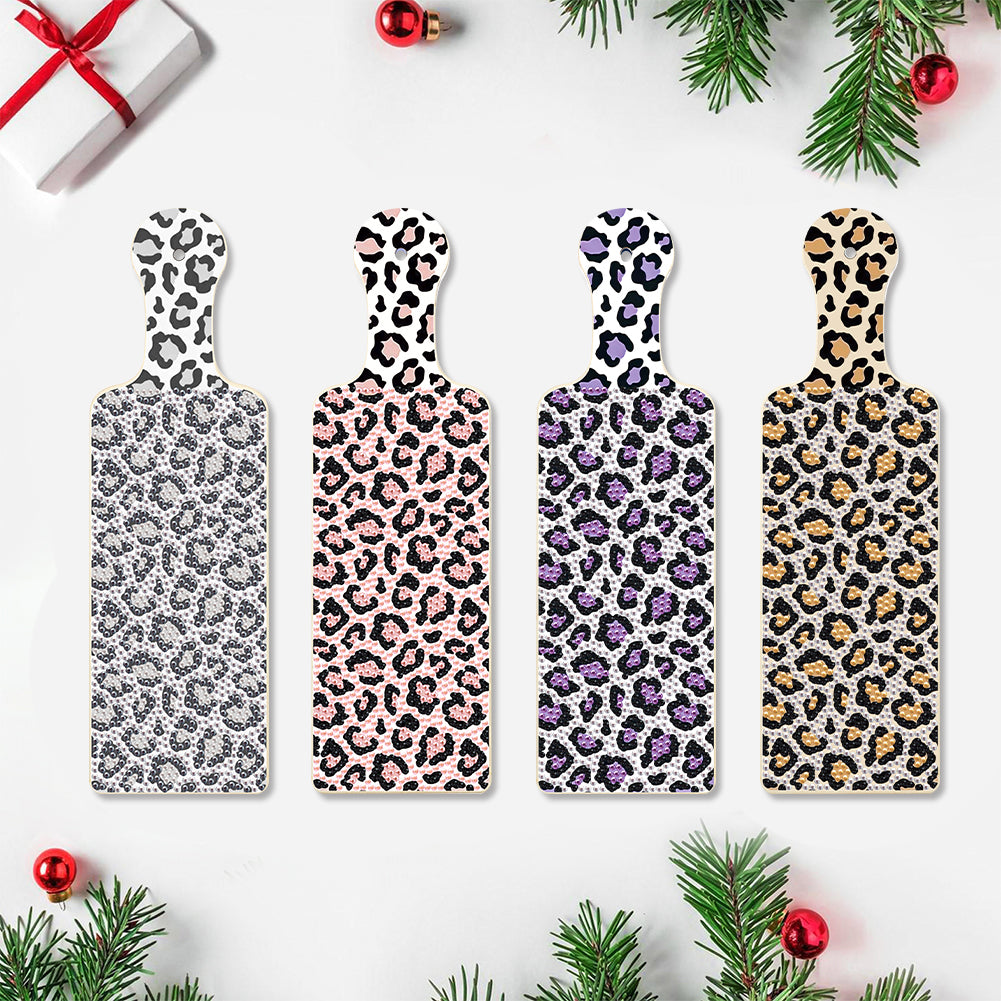 4Pcs Leopard Print Diamond Decorative Serving Tray for Desk Coffee Table