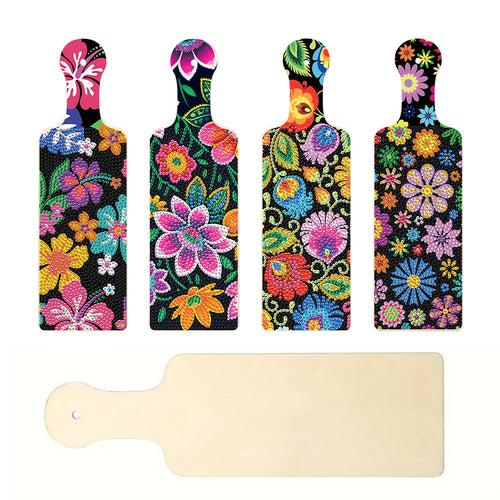 4Pcs Wooden Flower Plant DIY Diamond Painting Placemats with Holder for Decor