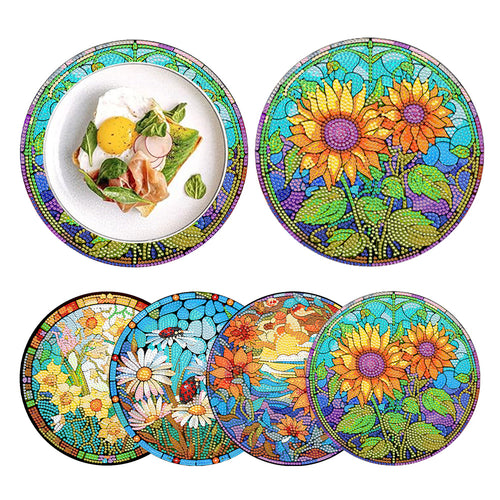 4Pcs Diamond Painting Coasters Flower Animal DIY Art Coaster Art Craft Supplies