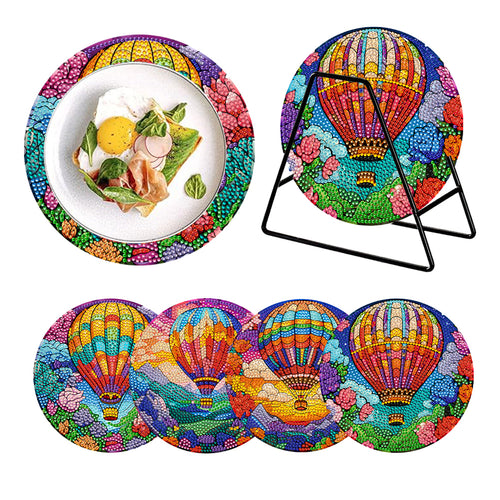 4Pcs Diamond Painting Placemat Hot Air Balloon and Flower Art Craft Supplies