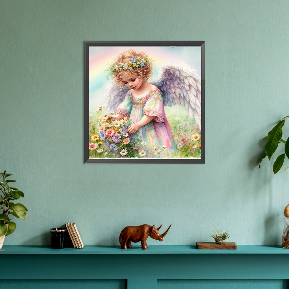 Diamond Painting - Full Round - Angel baby picking flowers (30*30CM)
