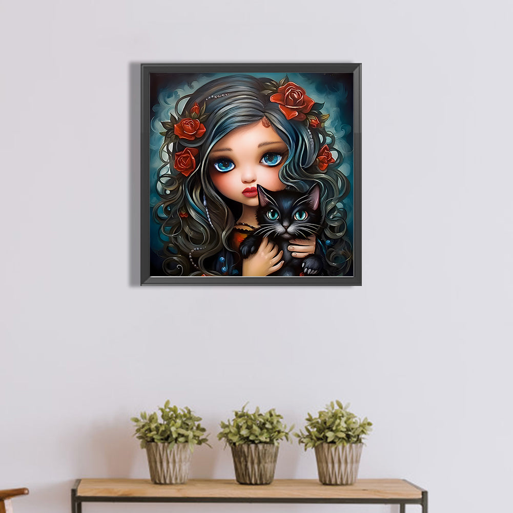 Diamond Painting - Full Round - black cat girl (40*40CM)