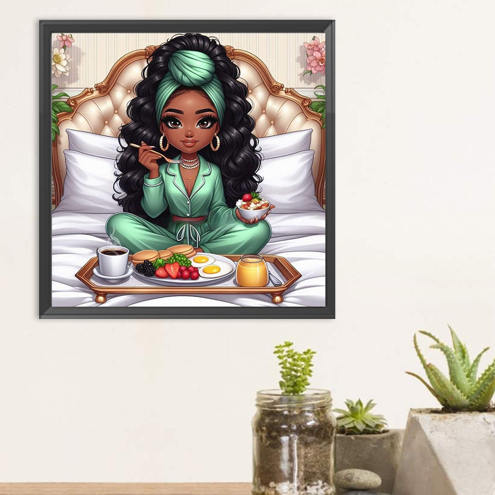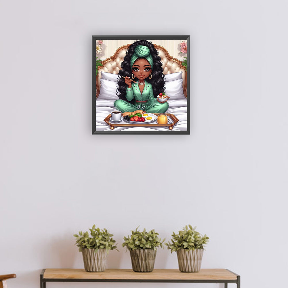Diamond Painting - Full Round - black girl at home (30*30CM)