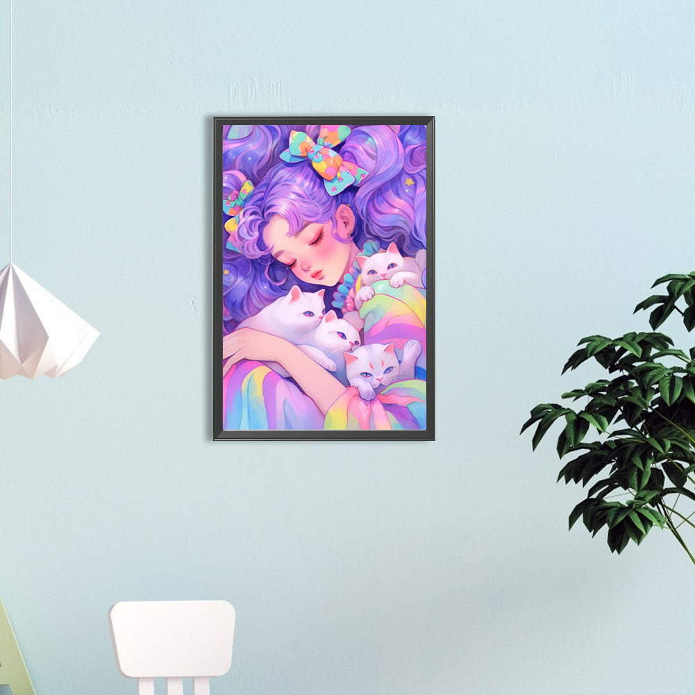 Diamond Painting - Full Round - Cat and Colorful Girl (40*60CM)