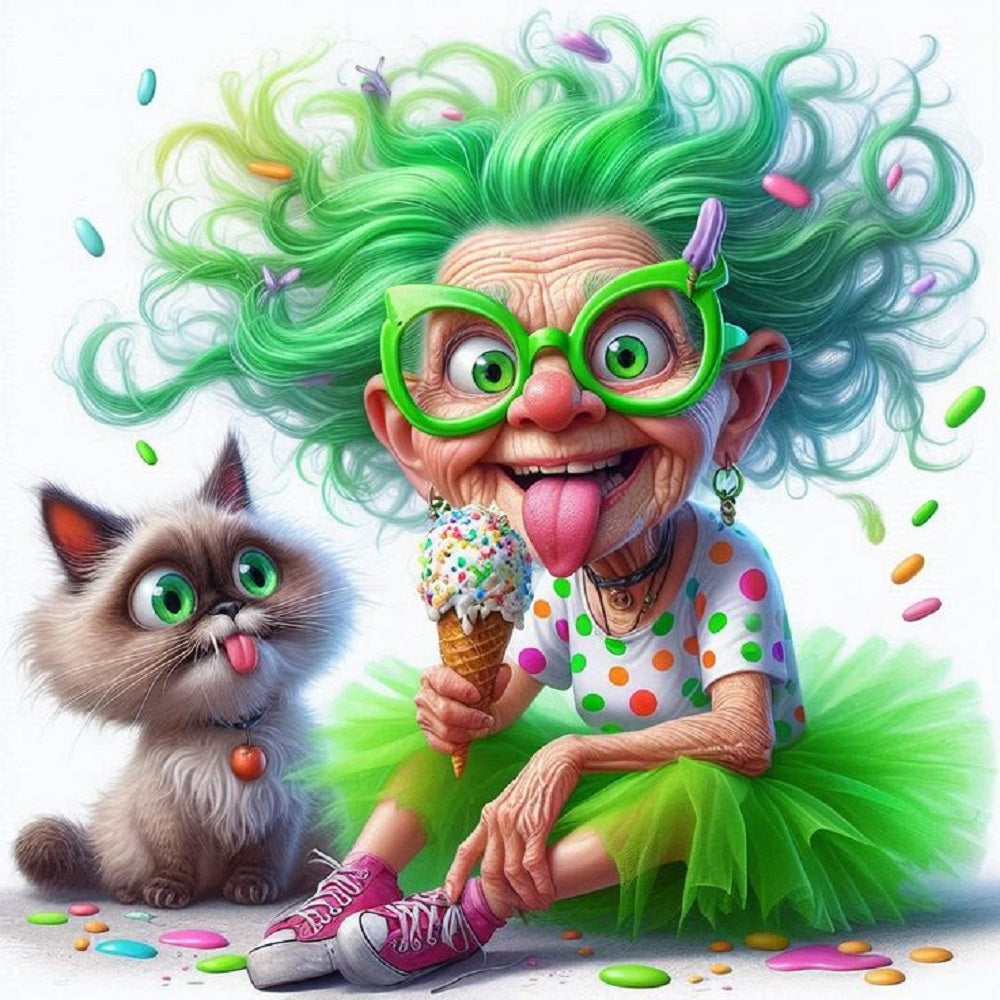 Diamond Painting - Full Round - Cat and green-haired grandma (40*40CM)
