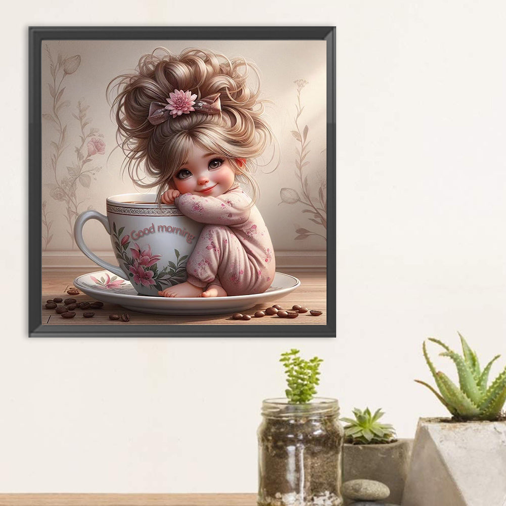 Diamond Painting - Full Round - Coffee cup and girl (30*30CM)