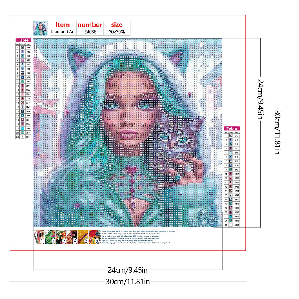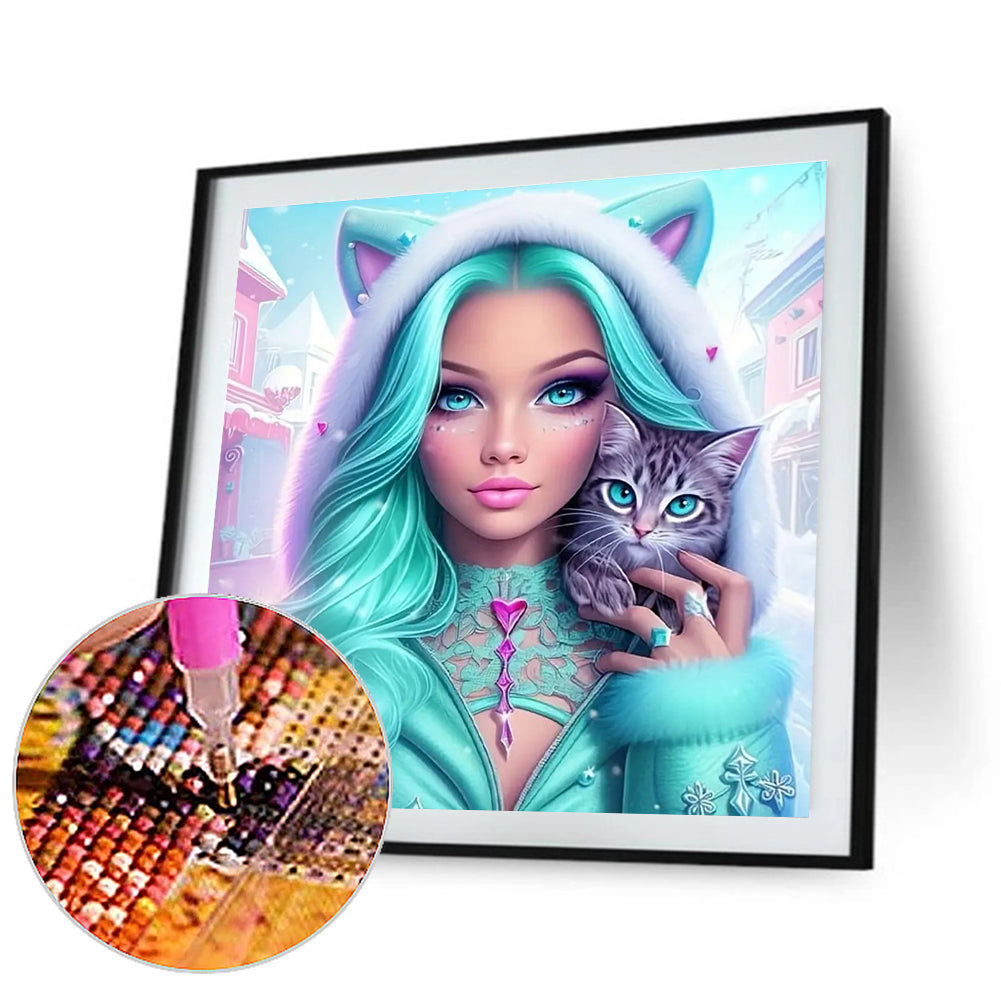 Diamond Painting - Full Round - Cool girl and cat (30*30CM)