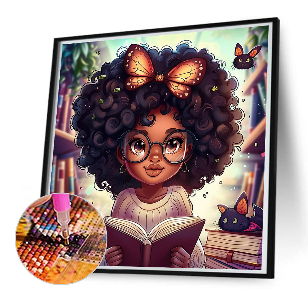 Diamond Painting - Full Round - curly girl reading (50*50CM)