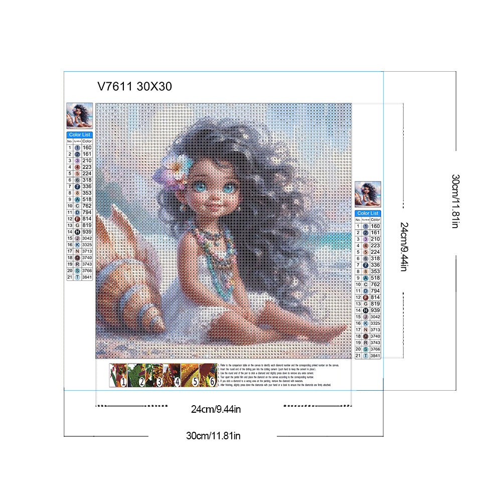 Diamond Painting - Full Round - Curly-Haired Girl By The Seashell (30*30CM)