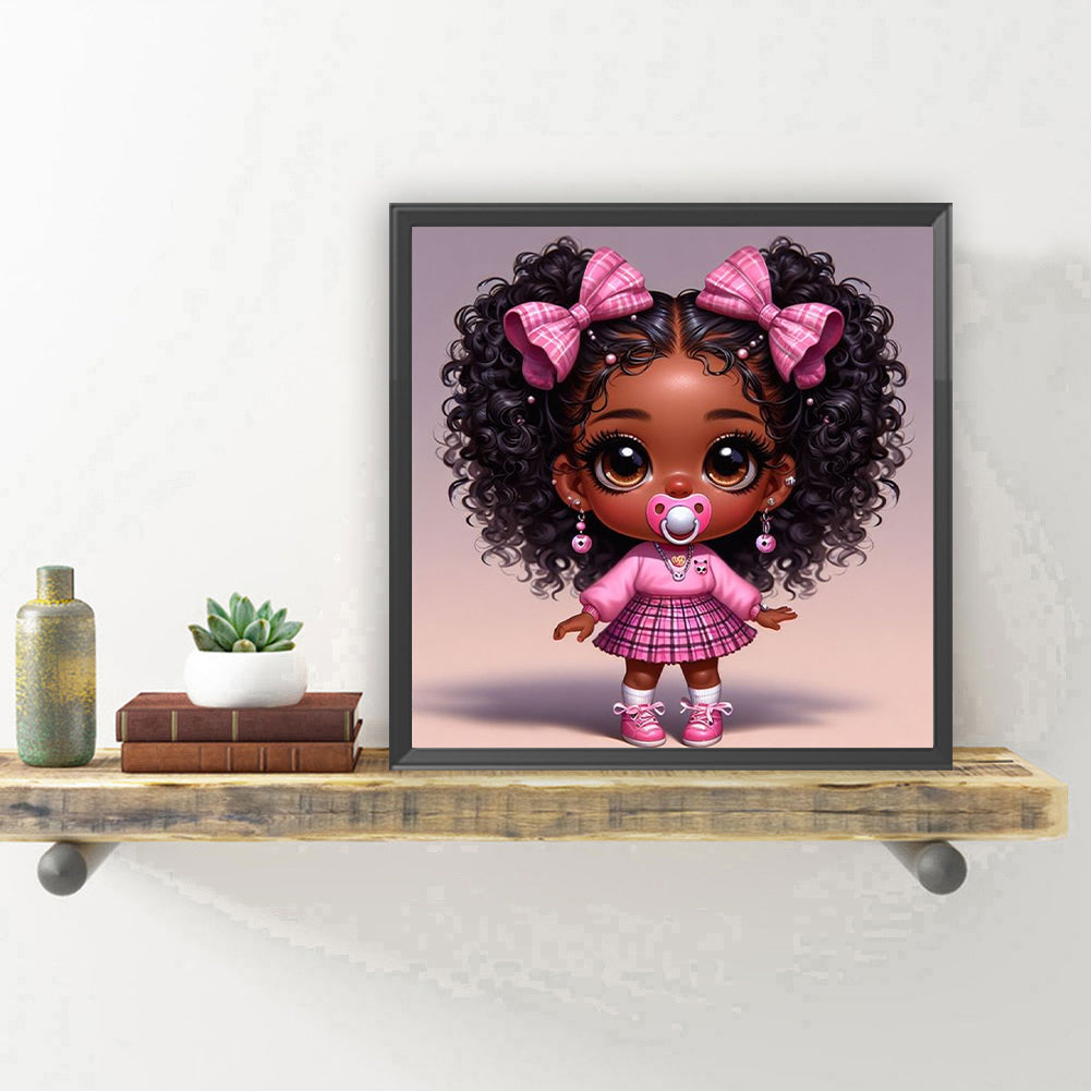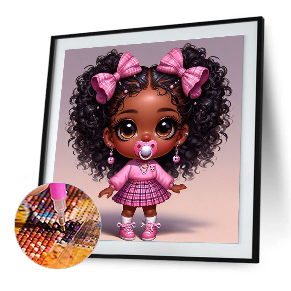 Diamond Painting - Full Round - Double ponytail curly girl (30*30CM)