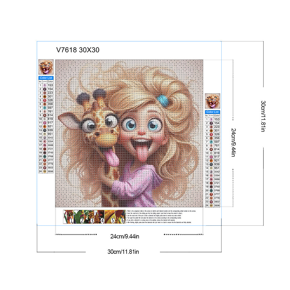Diamond Painting - Full Round - Funny Giraffe And Girl (30*30CM)
