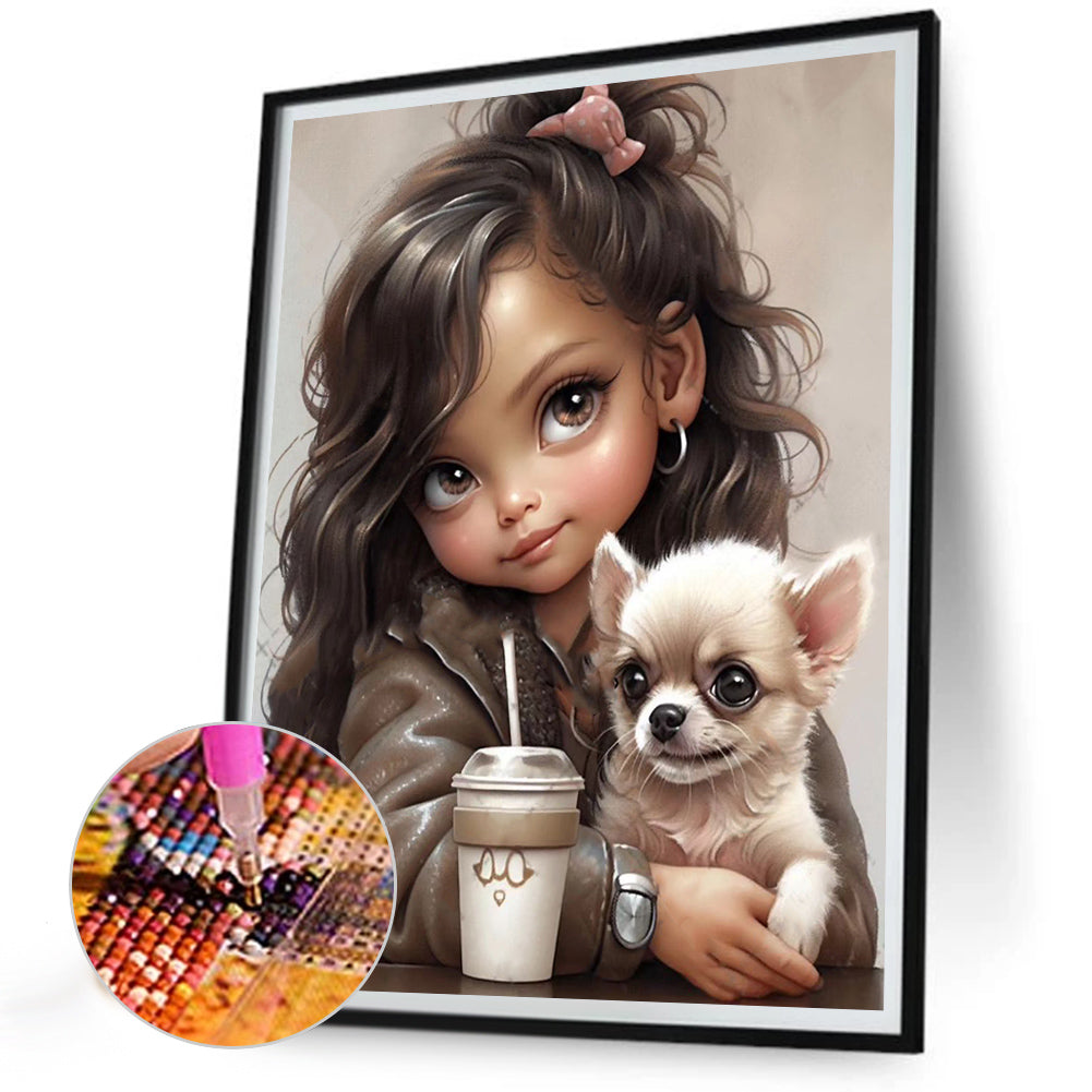Diamond Painting - Full Round - girl and puppy (30*40CM)