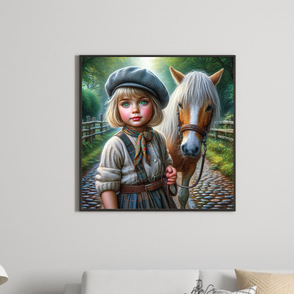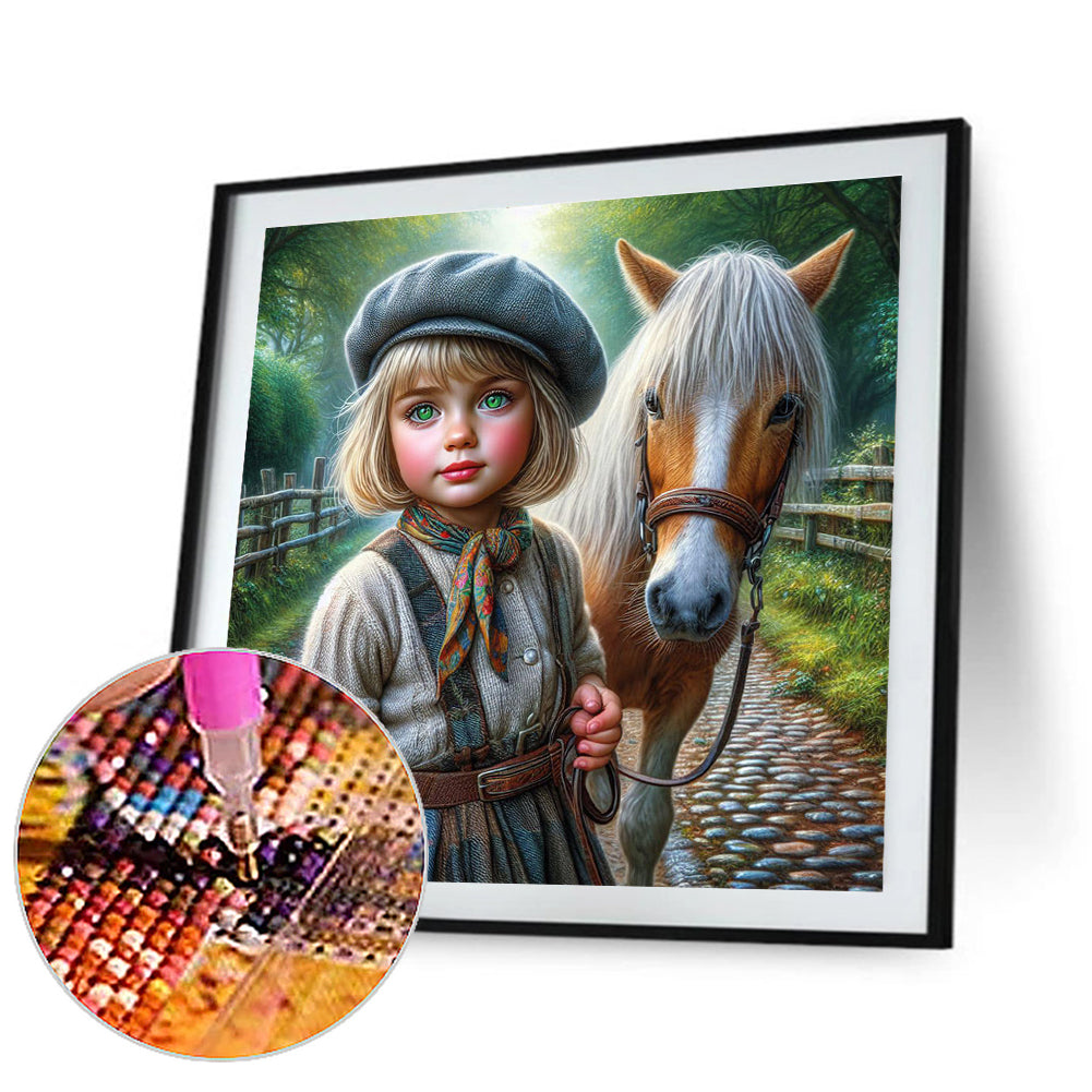 Diamond Painting - Full Round - Girl with animal pony (30*30CM)