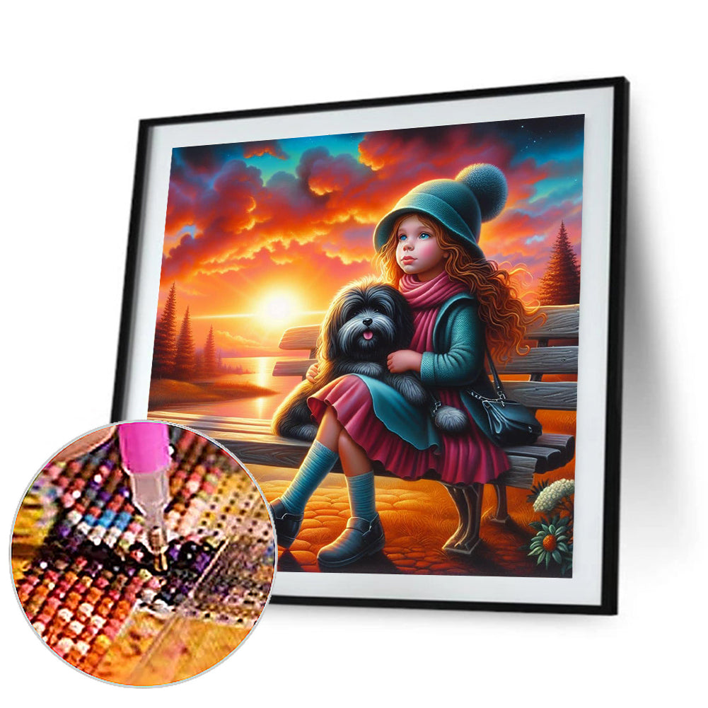 Diamond Painting - Full Round - Girl with animal puppy (30*30CM)