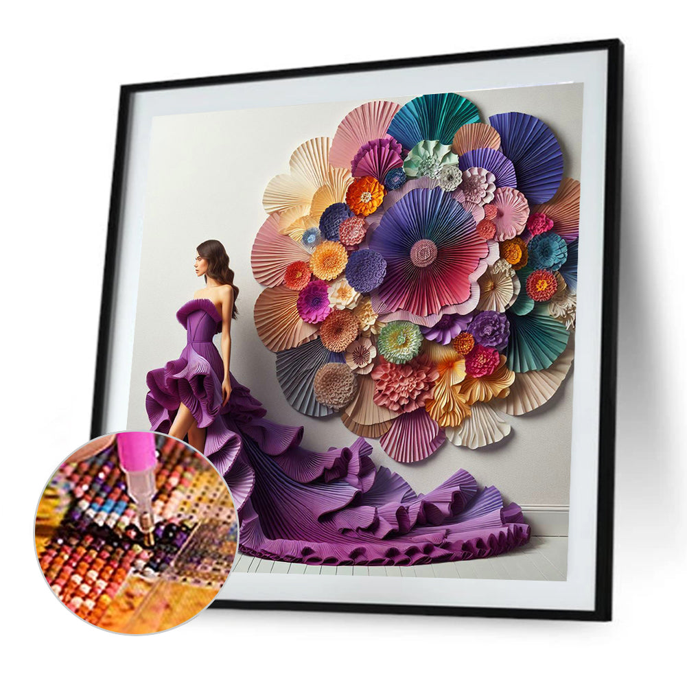• Load image into Gallery viewer, Diamond Painting - Full Round - Girl with dreamy purple skirt (40*40CM)