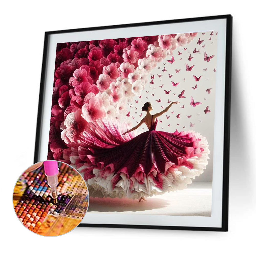 • Load image into Gallery viewer, Diamond Painting - Full Round - Girl with dreamy red butterfly skirt (40*40CM)